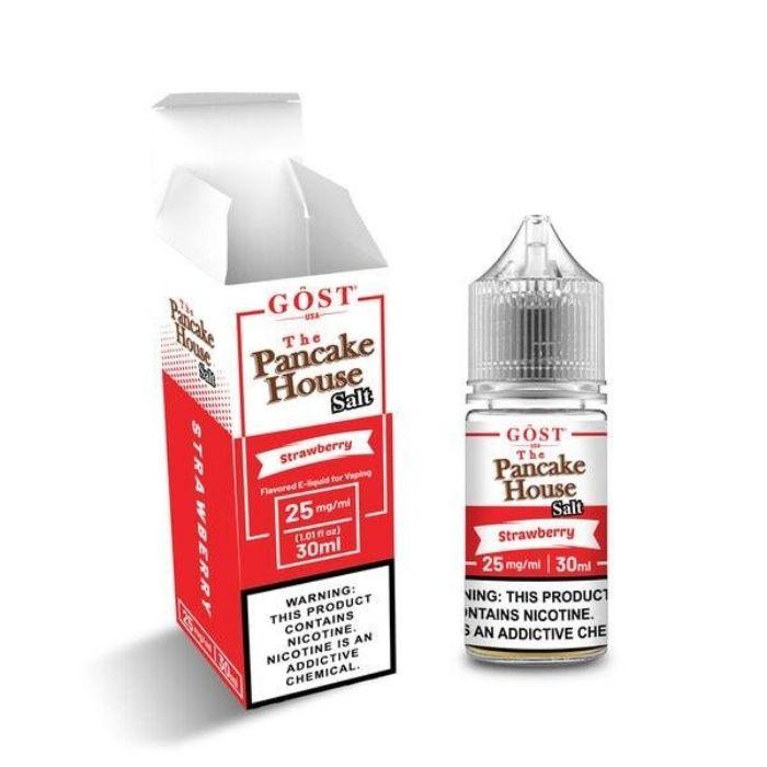 Strawberry SALT - The Pancake House by GOST Vapor, a phenomenal morning vape of steaming hot buttermilk pancakes, smothered in sweet maple syrup and fresh strawberries.